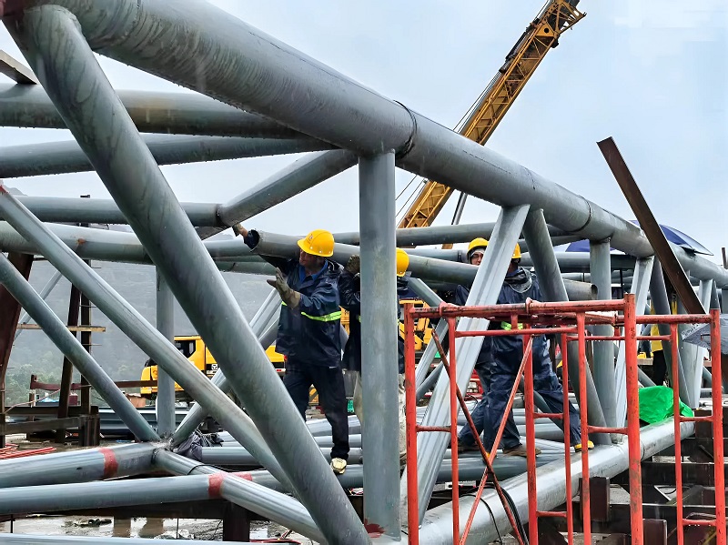 清晨的印尼工地,朝阳还未完全驱散薄雾,建设者们便已身着工装、头戴安全帽,穿梭在各个作业区域。在钢结构加工区,工人师傅们正全神贯注地进行焊接作业,飞溅的焊花在阳光下划出优美的弧线,每一道焊缝都必须经过严格检测,确保万无一失。项目部的调度室内,技术人员紧盯着施工图纸与进度表,反复核算数据、优化施工方案,针对海外施工中的技术难题,连夜召开专题会研究解决办法。