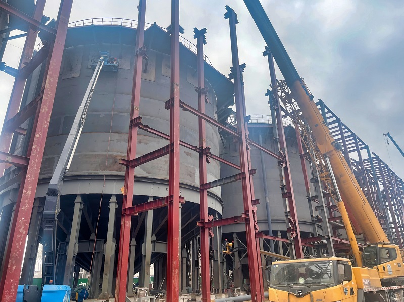 目前,赤泥沉降分离洗涤建筑安装工程正进行管廊支架钢柱、横梁安装焊接,管道安装;沉降槽桁架吊装、牛腿踏步安装。项目部科学统筹施工计划,强化现场安全管理,确保节日期间作业有序、进度不减。